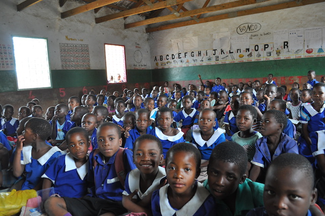 Book Aid International sends books to classrooms like this this one in Malawi, where over 100 children share only a few old tattered textbooks