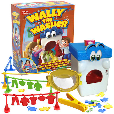 In the new WALLY THE WASHER game (RRP £24.99, age 4+) Wally spins just like the machine at home, then suddenly spills out his contents onto the table.