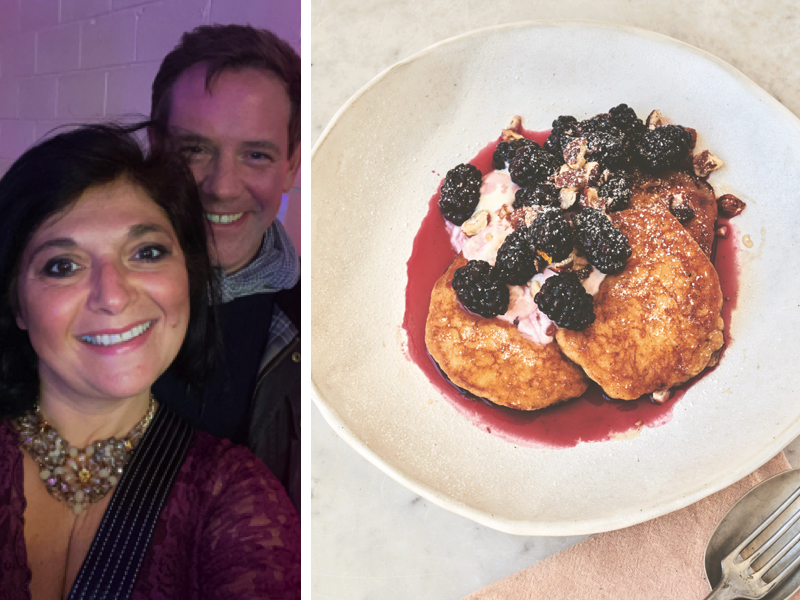 What a treat to have a Mother’s Day recipe from chef Matt Tebbutt, whom I recently met at the presentation of Pub in the park Wimbledon: Blackberry, ricotta and citrus pancakes. A classic breakfast staple that’s very simple to knock together. The addition of the ricotta gives these pancakes a deliciously smooth interior. You can choose whatever soft fruit you fancy, but the combination of blackberries and blackberry liqueur or cassis gives these a luxurious feel. You will need to strain the ricotta the evening before you want to make these pancakes – line a colander with muslin (cheesecloth), place over a large bowl and add the ricotta. Leave it to strain overnight in the fridge.