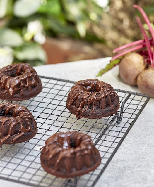Melt the chocolate and, using a fork, drizzle over the top of each cake.