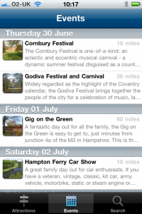 The new ‘Events’ tab at the bottom of the screen lets you see all sorts of one off things that are going on, listed by date and distance. It’s great for keeping you aware of all the special occasions going on around you.