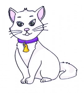 with her trusty fluffy white cat by her side, enters a magical world with a castle full