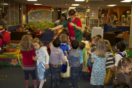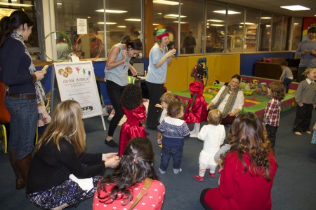 Maddy had to thank the energetic and super smiley girls from DIDDI DANCE who got the children to warm up beforehand with lots of dancing around with colourful props (ribbons, hoops, bubbles and balloons) as well as festive games. Children and parents really loved it. Diddi Dance usually run 45 minutes high energy classes aimed at 2 to 4 year old boys and girls.