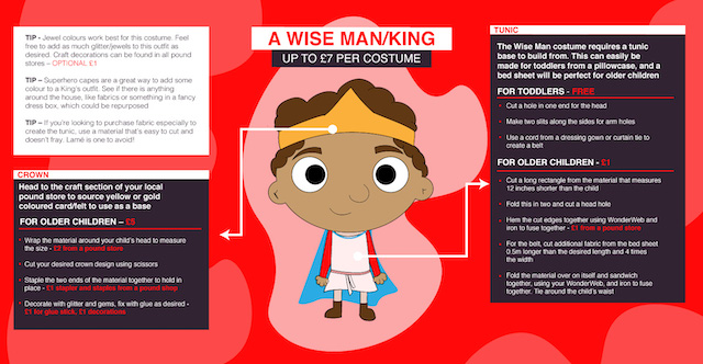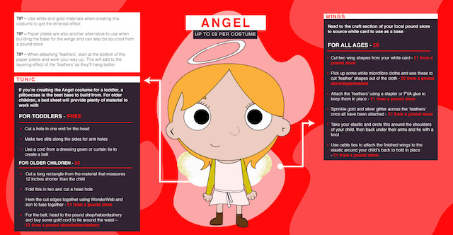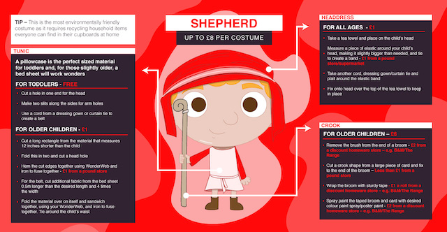 As the year draws to a close, both Christmas plays and Halloween have parents splashing the cash on high street costumes or begrudgingly reaching for needle and thread as they prepare outfits for their children. But it doesn’t always have to be stressful or expensive – think cable ties and the pound shop!