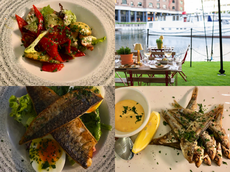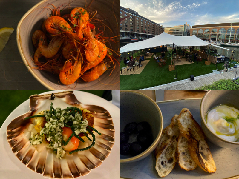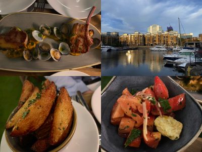 Even during pandemic times, in London it is still possible to enjoy a meal in a beautiful surrounding at St. Katharine Docks. Central London’s only marina has recently hosted a unique on-the-water dining experience, pop-up restaurant Avalon. This was an exclusive temporary dining space adjacent to the main restaurant The Melusine, and it was my first meal out in Central London since the pandemic started. The Melusine provided myself and my guest with an abundance of fresh seafood from its Greek menu, which included scallops, octopus, taramosalata and various salads.