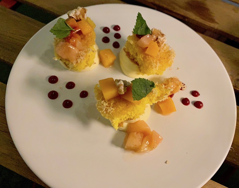 The mascarpone, amaretto sponge and seasonal peach dessert was so good that I had to have two!!
