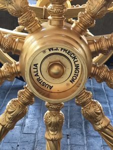It has a hidden dash-cam inside and is carved out of wood from a very old war-ship (250 years old) with 104 guns called HMS Victory, the famous ship that fought the French at the battle of Trafalgar. Its captain, Lord Nelson, you can still see at the top of his column in Trafalgar Square, a 12 minute walk away.