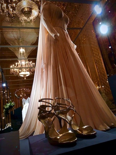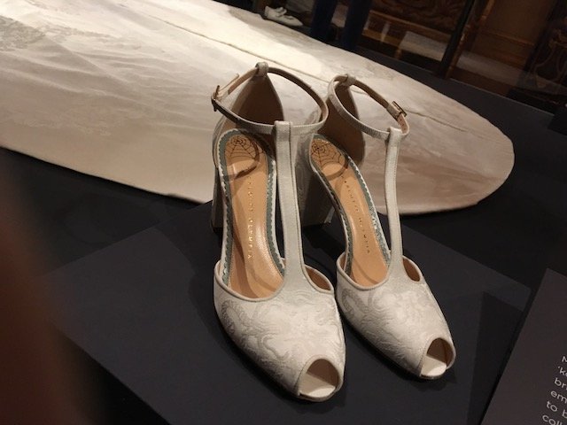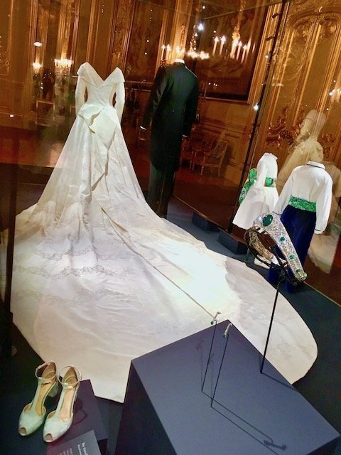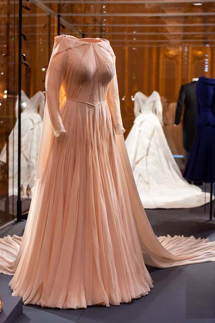 I dare say that my favourite outfit on display was Princess Eugenie’s evening gown created by the American designer Zac Posen inspired by Grace Kelly’s dress in the movie Catch a thief.