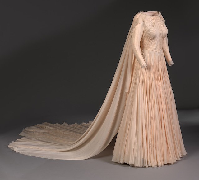 HRH Princess Eugenie’s evening gown, created by the American designer Zac Posen. Credit: Royal Collection Trust / (c) All Rights Reserved