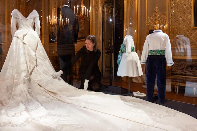 HRH Princess Eugenie’s wedding dress, created by Peter Pilotto and Christopher De Vos, founders of the British-based label Peter Pilotto. Credit: Royal Collection Trust / (c) All Rights Reserved