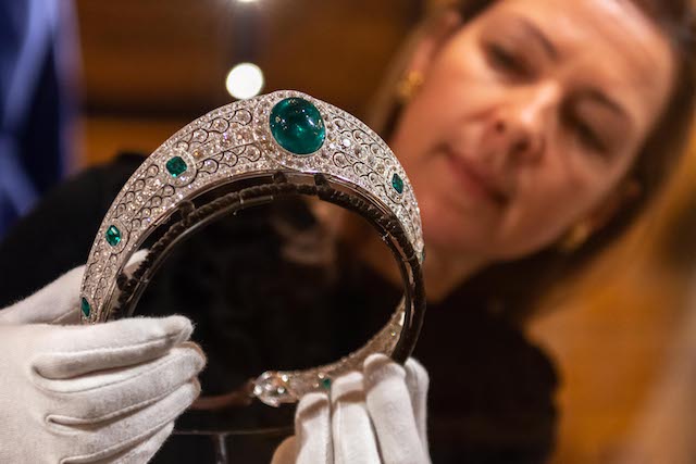 Other highlights of the exhibition include the Greville Emerald Kokoshnik Tiara, on public display for the first time and lent to Princess Eugenie by Her Majesty The Queen. It was the first time she wore a Tiara and she was thrilled about it.