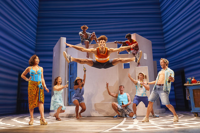 Mamma Mia! Alexandros Beshonges as Pepper (front centre) with the cast of MAMMA MIA! Credit Brinkhoff & Moegenburg