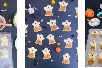 Trick or treat? These White chocolate Granola Bark Halloween Ghosts are most definitely the ideal treats for the spooky season. This seasonal recipe is a must make for families with young children, and you can even personalise yours by adding some of your own favourites when decorating like raisins or nuts.
