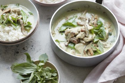 What I love about this book is that she tells little stories about the inspiration behind each recipe. This Thai green chicken curry was created after a trip to Thailand many years ago to train in Thai cuisine. Try this meal with your family and let us know what you think.
