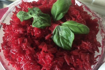 This is my own recipe for Beetroot risotto. It’s very easy, healthy and super colourful.