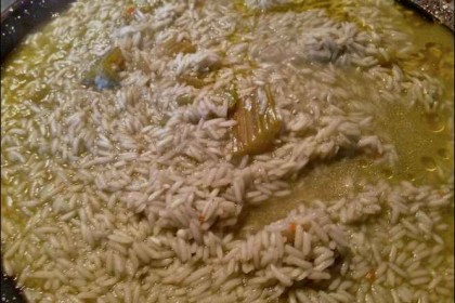 Thistle is a very healthy vegetable and grows wild in Sardinia where I recently went to spend Christmas holidays with my family. Thistles are often sold on the streets by people who like going to the countryside for walks and find them in abundance everywhere and anytime especially in Winter (over Christmas). Risotto is usually great with all vegetables but Risotto ai cardi in particular is one of my favourite with its delicate and creamy flavour. I remember my mum making lots of dishes with thistle when I was living at home. Its smell brings back lots of lovely and nostalgic memory. I hope you will enjoy this dish as much as my family and I do. Rice with wild thistle is a Winter recipe and particularly suitable for coeliac, vegetarian and vegan people.