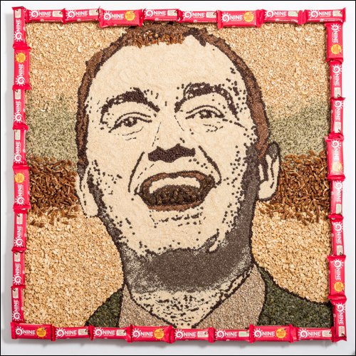 Tim’s infectious smile has been captured with linseed, carob and Seed Bombes, and his hair features pecans and linseed.