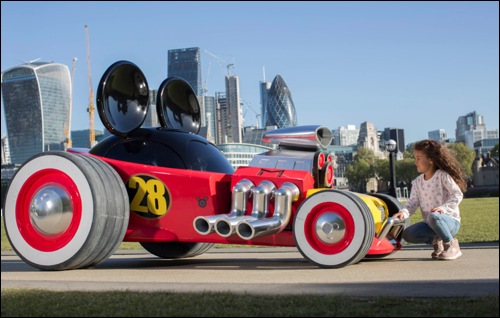 Created by a specialist team of eight engineers and experts, the model car took eight weeks to build and was commissioned to celebrate the launch of Disney Junior’s new animated children’s series. Mickey and The Roadster Racers sees Mickey and pals – Minnie Mouse, Donald Duck, Daisy Duck, Goofy and Pluto – racing across the globe on action-packed adventures, including a dash across London to stop a crown jewel thief.