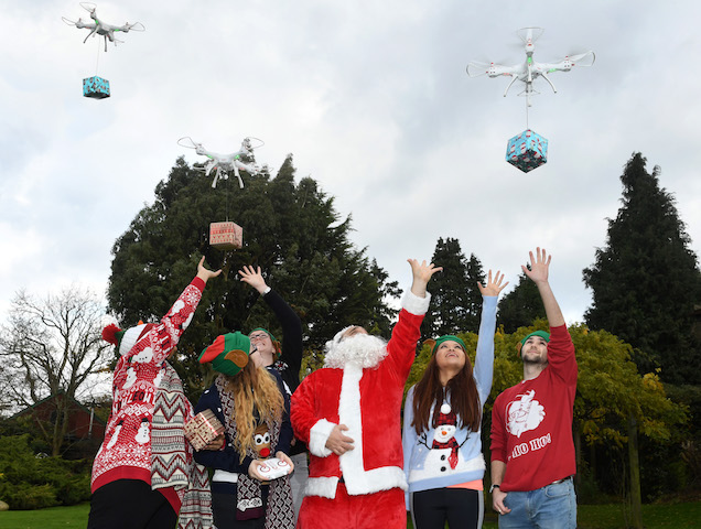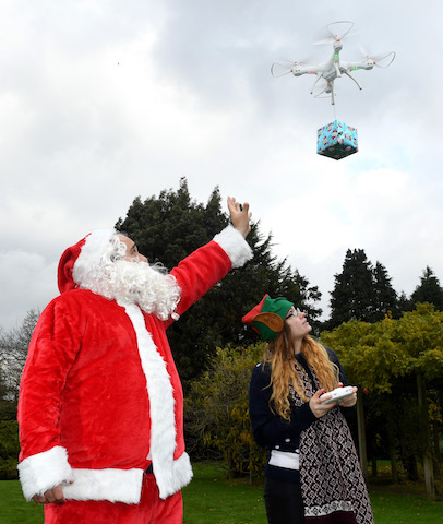 Santa has upgraded his method of delivering presents this year by enlisting the help of Hawkin’s Bazaar drones.
