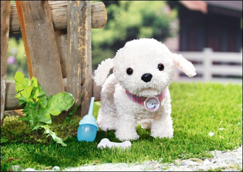 BABY born loves her animals and pets, she won’t go anywhere without her brand new BABY born Pony Farm Puppy Doodle. A cute little dog who loves to run around the farm. Just like a real dog, Puppy Doodle has a variety of functions including drinking, peeing and eating. Comes with a bottle, a plastic bone and collar with tag.  For ages 3 years and over.