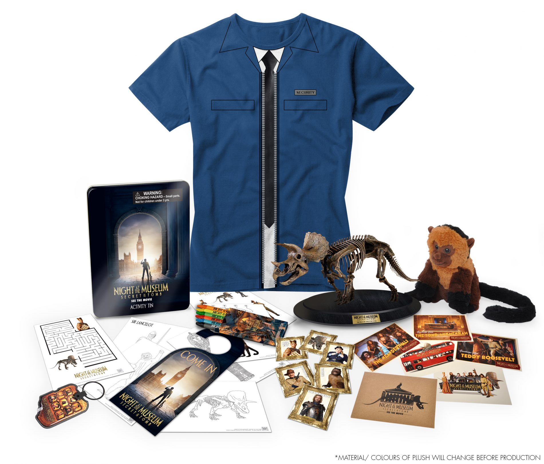 • Prize for 3x winners is x1 set The Night at the Museum goodies / merchandise pack which consists of 1 x Character Magnets, 1x Trading Cards, 1x Postcards, 1x Tablet Torch, 1 x Activity set, 1x Dexter Plush, 1 x 4D Triceratops Skeleton Fossil, 1 x T-Shirt