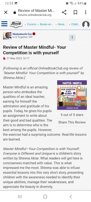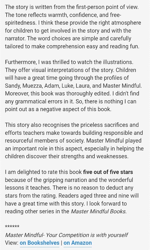Garnering consistent five-star reviews, everyone who reads this first edition will be eagerly awaiting Shirena Aktar’s next Master Mindful book. They will also be delighted to learn that ten stories are already written, all of which will be published one by one.