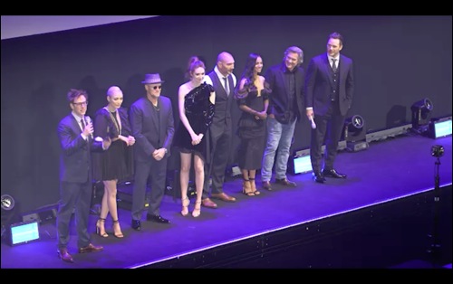 Cast and Director attended the European one night only premiere at Hammersmith Apollo which featured amazing special visual effects while Awesome Mix 2 played in the background. It was probably the coolest premiere I have ever attended. What an amazing start of the film. The director introduced the cast who seemed as amazed as we were in the audience about the theatrical show.