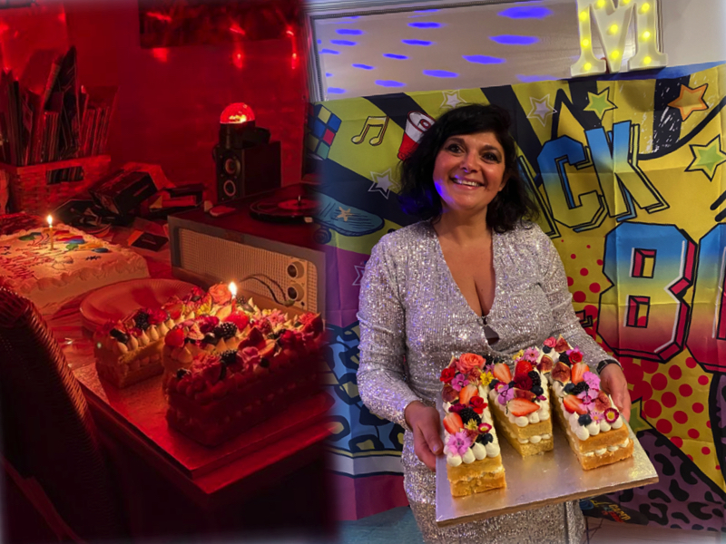 At my party, we had two big cakes. One of them was in a M shape for my initial M(onica) and was made by My Baker. This cake was not only fabulous to look at but also delicious. I don’t like overly sweet cakes and this was just perfect.
