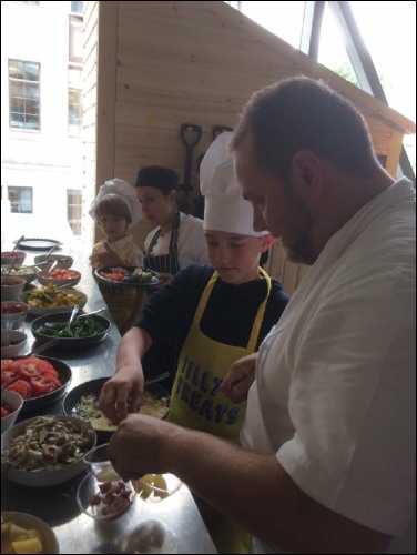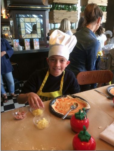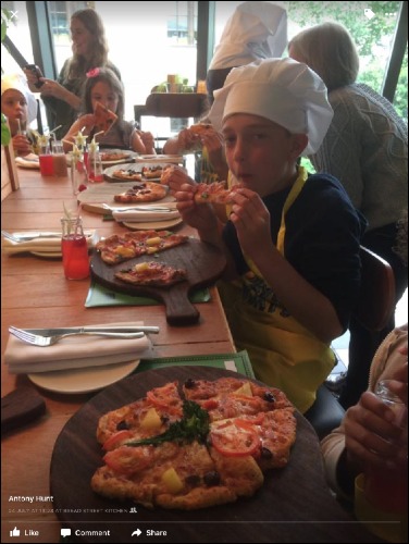 Head chef, Paul Shearing was amazing & effortlessly took control of the group & after washing their hands they immediately started having fun with the Pizza dough & spreading their favourite ingredients on top.