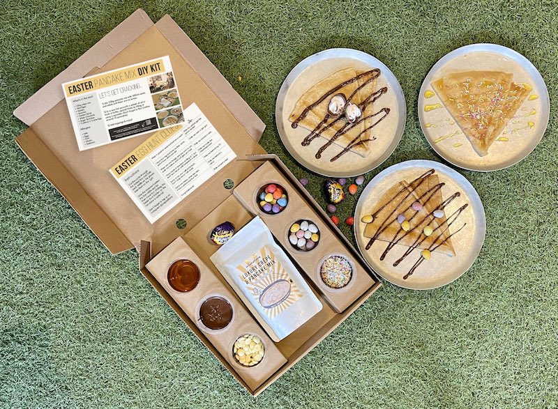 To make things easier for mums and dads to involve the children in making these French style Easter pancakes, we have used a DIY kit recently created by Crêpeaffaire that comes packed with everything needed for delicious family festivities this spring. The Easter kit includes 250g of luxury house-blend pancake mix (enough for around 10 crêpes) and seasonal toppings of Nutella, smarties, white chocolate, mini eggs, golden syrup and Cadbury’s crème eggs. They are easy to make using the kit. Kids just need to add water and get ready to flip. They are available for nationwide delivery and cost £15.50.