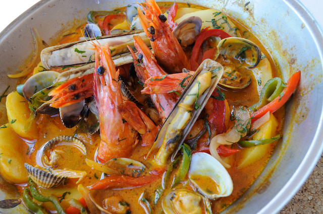 Cataplana is a traditional dish combining shellfish and fish in a sweet tomato, paprika and herb sauce, prepared using a typical Portuguese copper pot – cooked and presented in a typical Algarve manner! This recipe from Portugal was kindly donated to London Mums by Martinhal Family Hotel & Resorts.