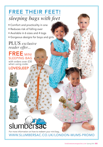 Claim your FREE MINI Sleeping bag from Slumbersac with orders over £30 when using Code LOVESLEEP at www.slumbersac.co.uk/London-Mums-Promo