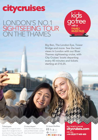 Sightseeing – Great Value at £10 and £5 – CityCruises boats operate every 40 minutes from Westminster, Waterloo, Tower and Greenwich piers and if you book online now you can benefit from a great price for an all-day, hop-on, hop-off ticket. Aboard each boat, the knowledgeable captain provides insightful commentary, so parents and children can learn fun London facts whilst hunting the city’s many famous sights. http://www.citycruises.com/london-sightseeing/river-red-rover