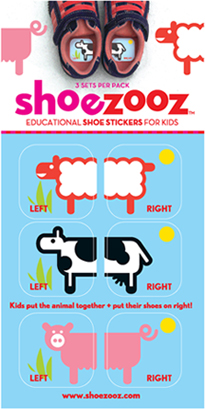 When graphic and website designer Ellen Lichtman’s daughter was three years old, she provided her mum with an “Aha!” moment that would, four years later, become a unique product that most parents will wonder how they ever lived without. Shoezooz Educational Shoe Stickers are a fun, easy way for children to differentiate their left shoe from their right so they can put their shoes on correctly, by themselves.
