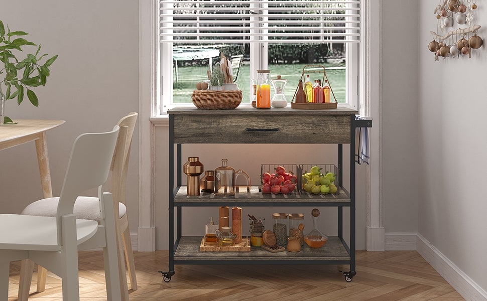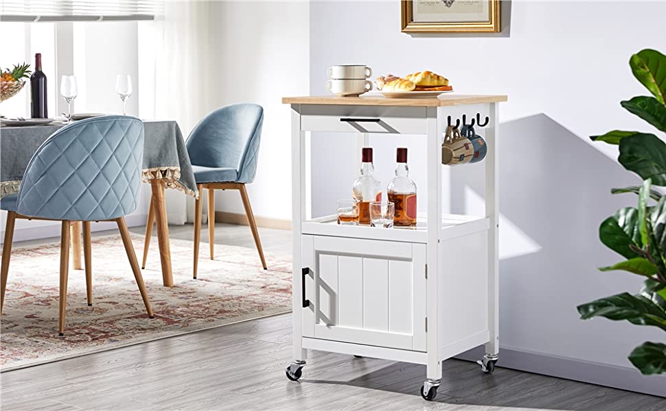 Friendly reminder: Due to the low height of this small-sized kitchen cart, try to keep your little children away from it to avoid knocking off the bowls and dishes on the countertop.