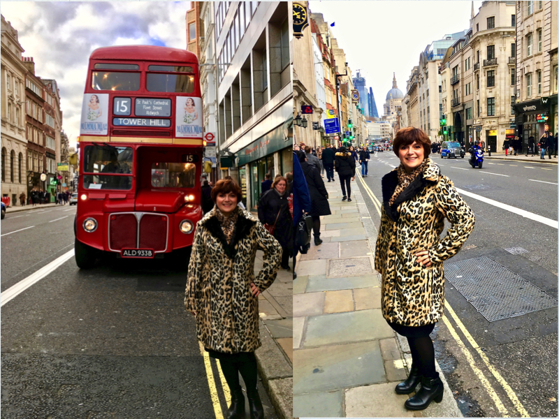This is me sporting a leopard print faux fur coat by V by Very through the streets of London