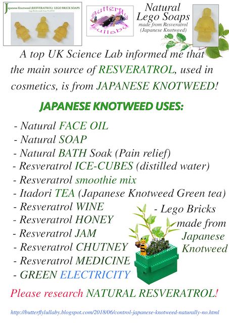 My friend Sharon J. Bainbridge is making Japanese Knotweed (Resveratrol) Soaps in the shape of Lego figures. They are super cute and healthy.