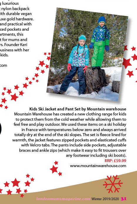 We have featured Mountain Warehouse in the London Mums magazine Christmas 2019 edition.