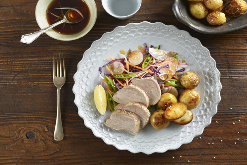 Recipe: Roasties with a quick roast pork and Asian slaw