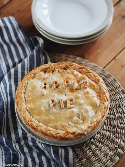 Fill your pie crust to the brim and cover with the other half of your pastry. Roll out the off-cuts and decorate as you like! It looks stylish to plait around the edge or have fun making autumn leaves.