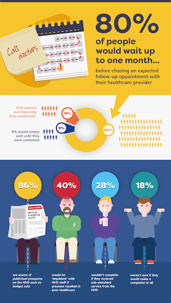 2,000 people were surveyed and 80% confessed that they would wait a whole month before following up on an expected follow up appointment. 9% would wait instead until they were contacted, rather than pursuing an appointment. Of those surveyed, 86% stated that they were conscious of the pressures the NHS is under at the moment, with examples such as budget cuts or lack of investment. This disquieting reaction suggests the British public are taking on the weight of the overstretched NHS, conceding their own wellbeing in an attempt pull the prized national service back from the edge.
