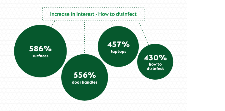 - Searches for ‘How to disinfect’ are through the roof – increasing 430% between March and May 2020.