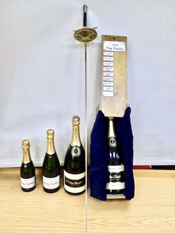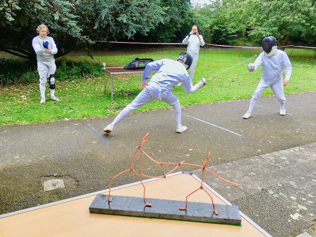 These days I train every Monday night with a lovely bunch at the Club Des Artists in Putney. Watch some pics from our recent fencing party at Bishops Park called PISCHT (which stands for Pretty Inebriated Sword and Champagne Tournament) and sounds like PISSED where we had to drink alcohol before every bout. It was totally bonkers and fun!