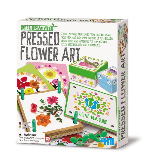 Involve children in making nature arts and crafts with recycled fallen flowers and leaves. It’s easy to preserve the beauty of nature by making pressed flower crafts. There’s a lovely kit available from toysandbears.com to help with that. In the box there are enough materials for making trinket boxes, greeting cards and bookmarks. This box is suitable for ages 5+.
