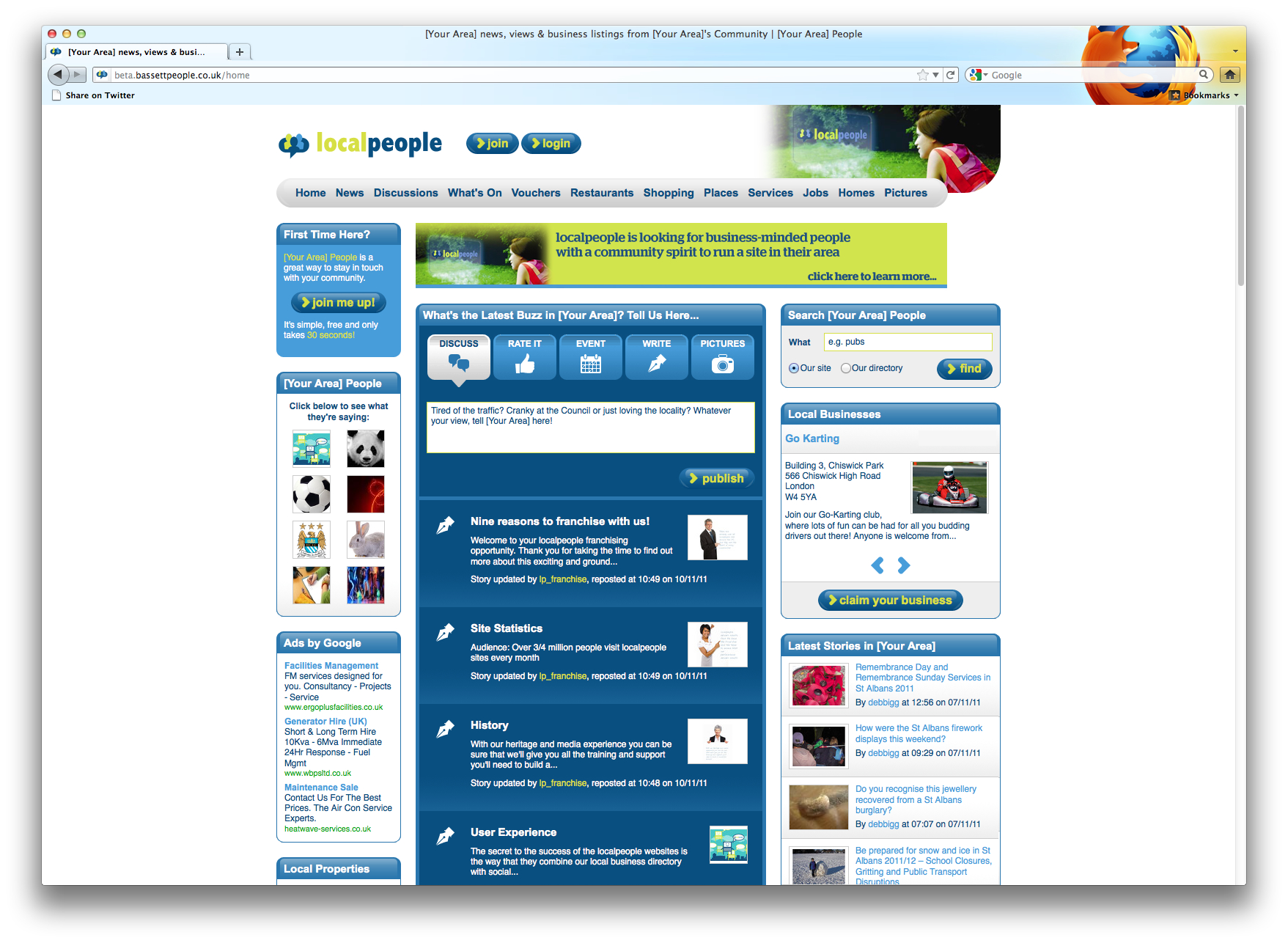 A great opportunity for working parents has presented itself in localpeople, an online hyperlocal community network of websites, currently making new sites available throughout the country. The extended network creates the opportunity for those with an entrepreneurial spirit to essentially run their own unique social-media centres within the heart of their local communities.