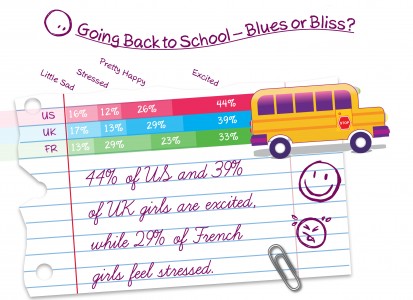 More than 100,000 girls in the UK, US and France responded to the Back to School survey run by GirlsGoGames social gaming platforms in just a few days! The idea behind was to find out how girls in the UK, US and France are feeling about going back to school after their summer break. It turns out that while some passions are universal (cookies, art and the social side of school), attitudes to school vary between countries.