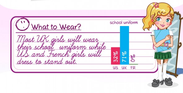 When it comes to style and attitude, almost half the US girls plan to dress to stand out from the rest of their classmates. This differs to girls in the UK who wear school uniforms and express their style through their school stuff, like their stationary and school bag (28%).