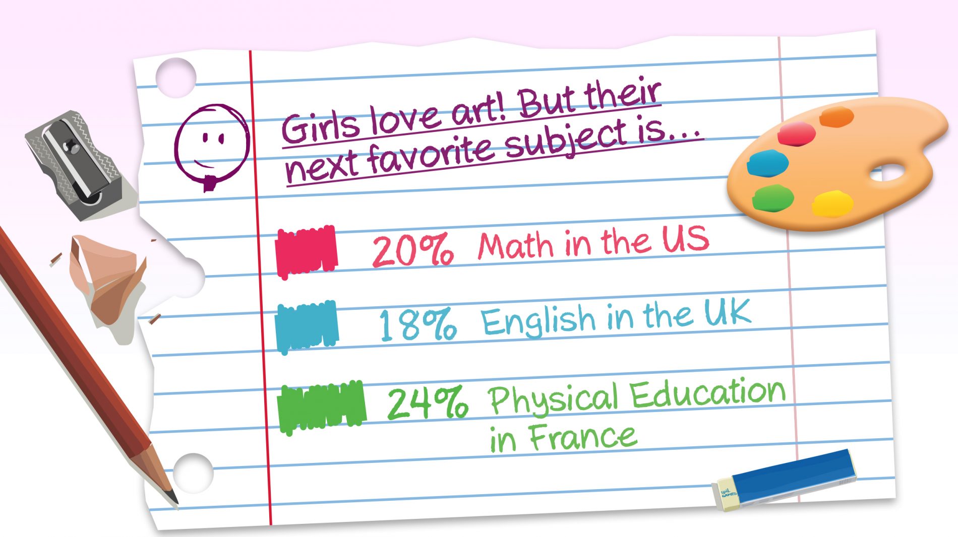 All the girls like art the best, but the second-favourite subjects vary by location. UK girls prefer English, French girls physical education, and US girls have a passion for maths. It’s great to see this generation of girls moving past the old stereotypes that have hampered girls in the past.