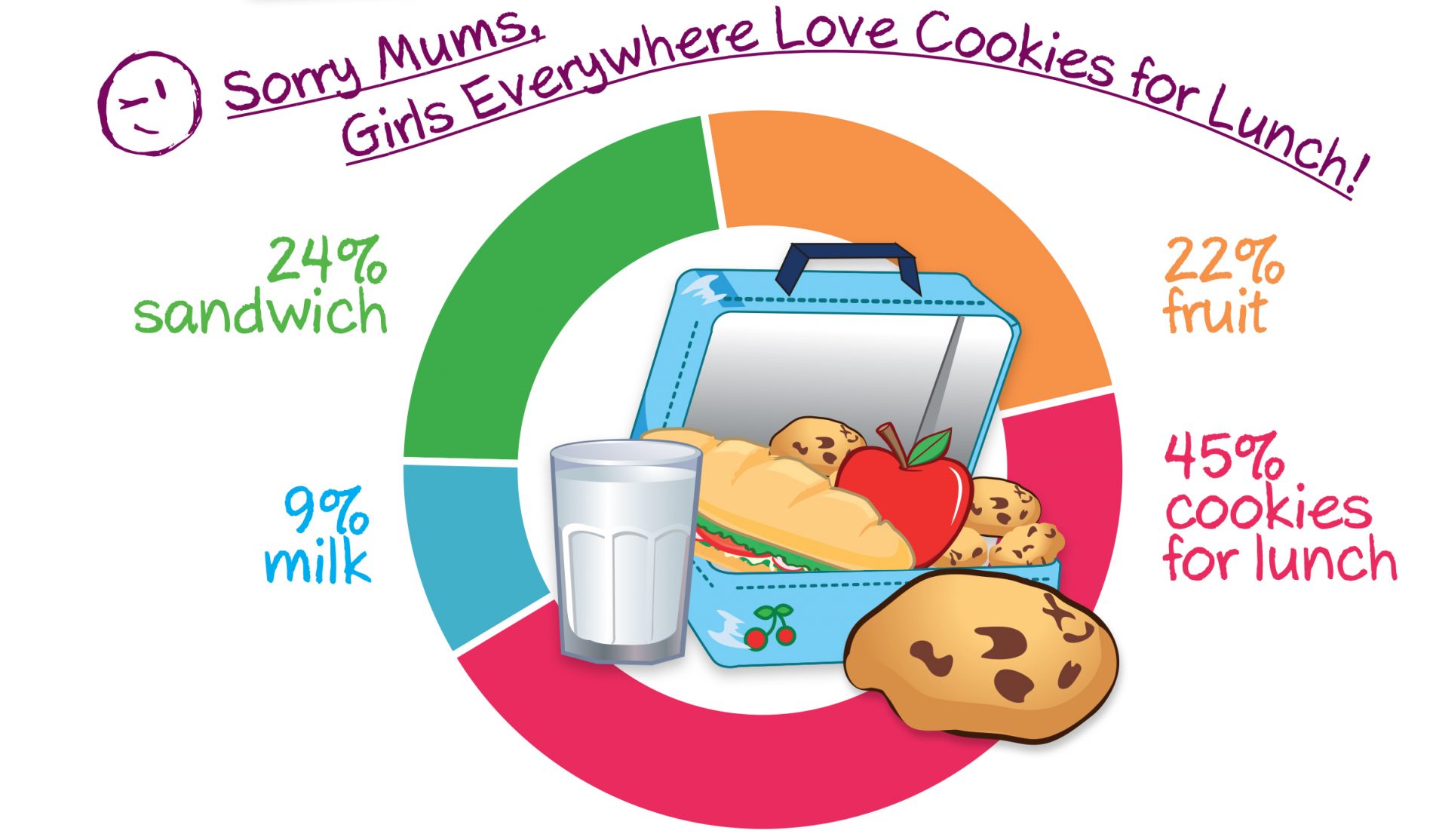 UK girls have the biggest sweet tooth, with a huge 57% looking forward to biscuits in their lunchbox, compared to 32% in France. The French are more health-conscious, with 18% preferring milk as their beverage of choice when at school.