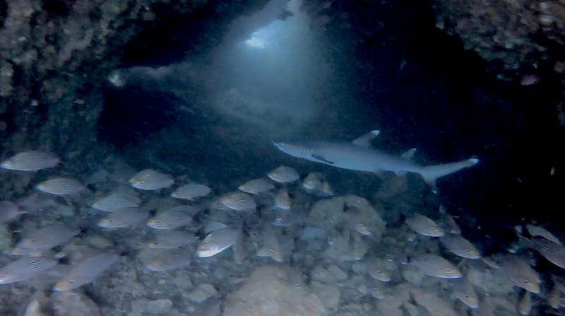 My tour guide William took me to snorkel above a sharks’ cave, dived down and took great footage of the sharks while I was swimming above. Scary but amazing how these small sharks seem harmless.